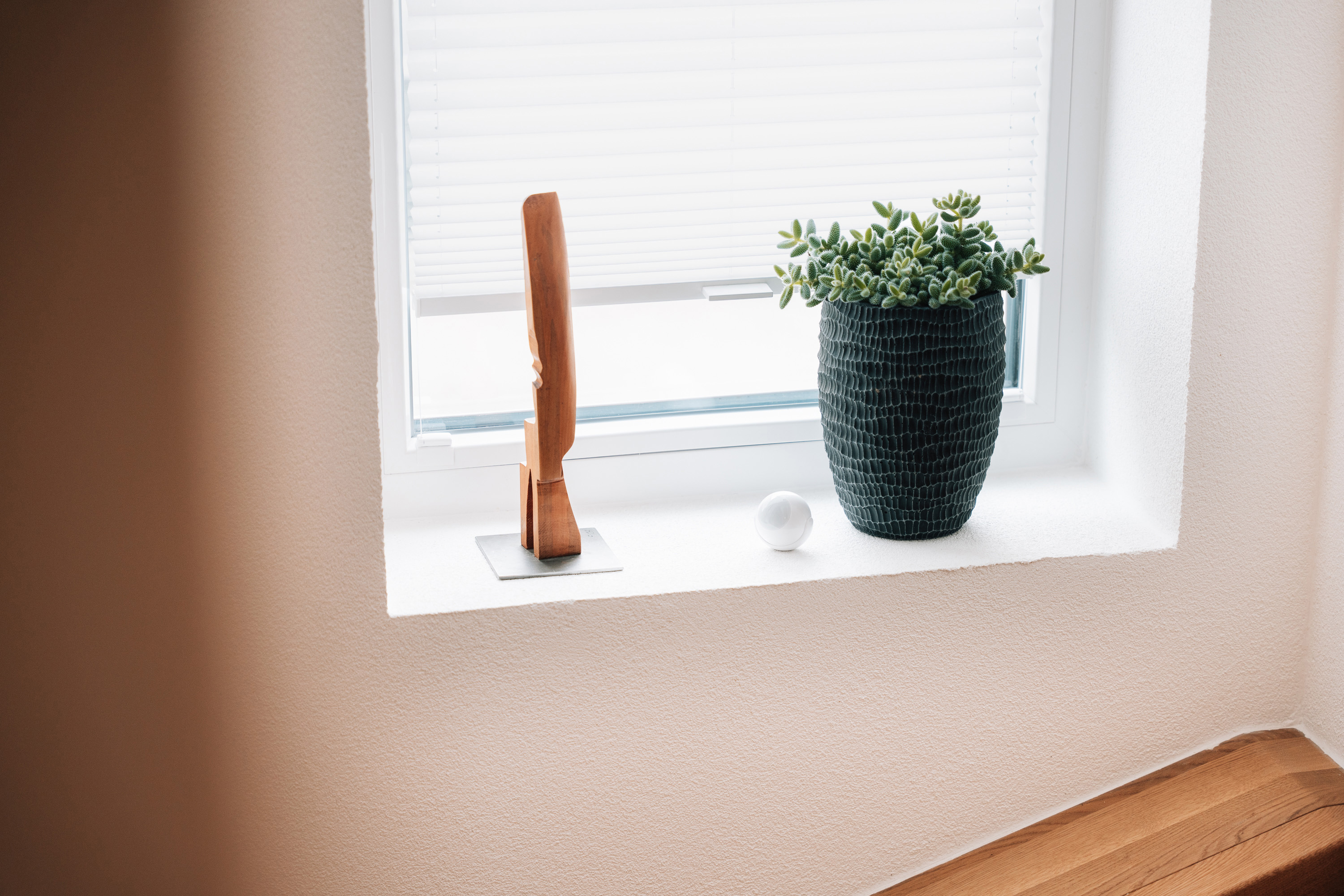 Während die Innenarbeiten, einschließlich Abriss, neuer Raumaufteilung und Einrichtung, in Eigenregie durchgeführt wurden, übernahmen Fachfirmen die Erneuerung von Dach, Fassade und Treppenhaus. Auch die alten Fenster wurden ersetzt – und nicht nur das: Neue Jalousien und Rollläden mit Automatisierung aus dem Hause elero kamen ins Haus. "Die alten Fensterläden mussten wir früher mühsam per Hand öffnen und schließen. Jetzt genügt ein Knopfdruck, und die Jalousien reagieren", sagt Ella Gigantiello.