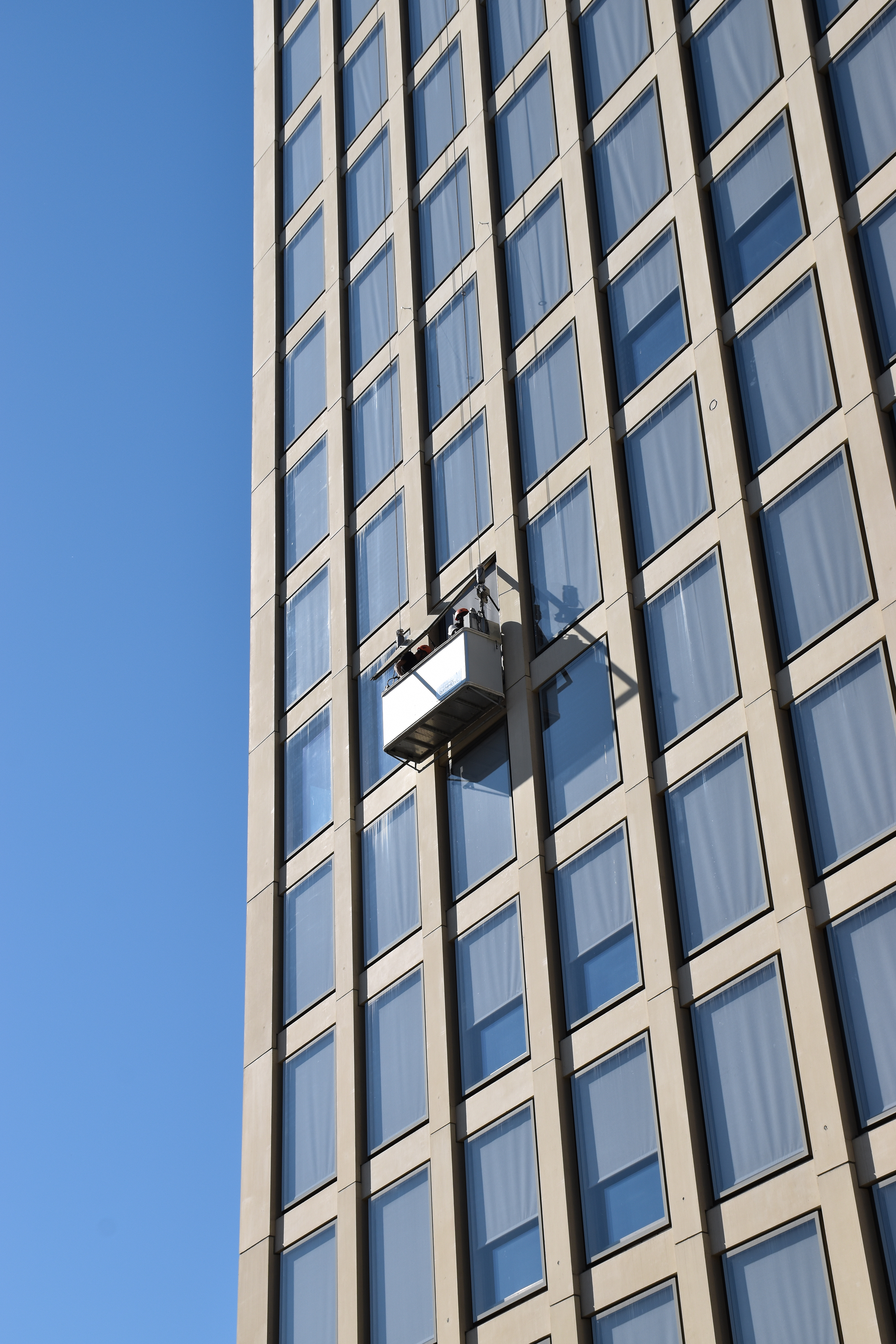 Drei Personen – davon zwei Fachkräfte im Lift und ein Zuarbeitender außerhalb – waren dafür von Mai bis September im Einsatz. Das ausführende Unternehmen war die Ammann Storen AG. Die neuen PVC-freien Beschattungsgewebe „Twilight Pearl“ stammen von der Sattler Schweiz GmbH.